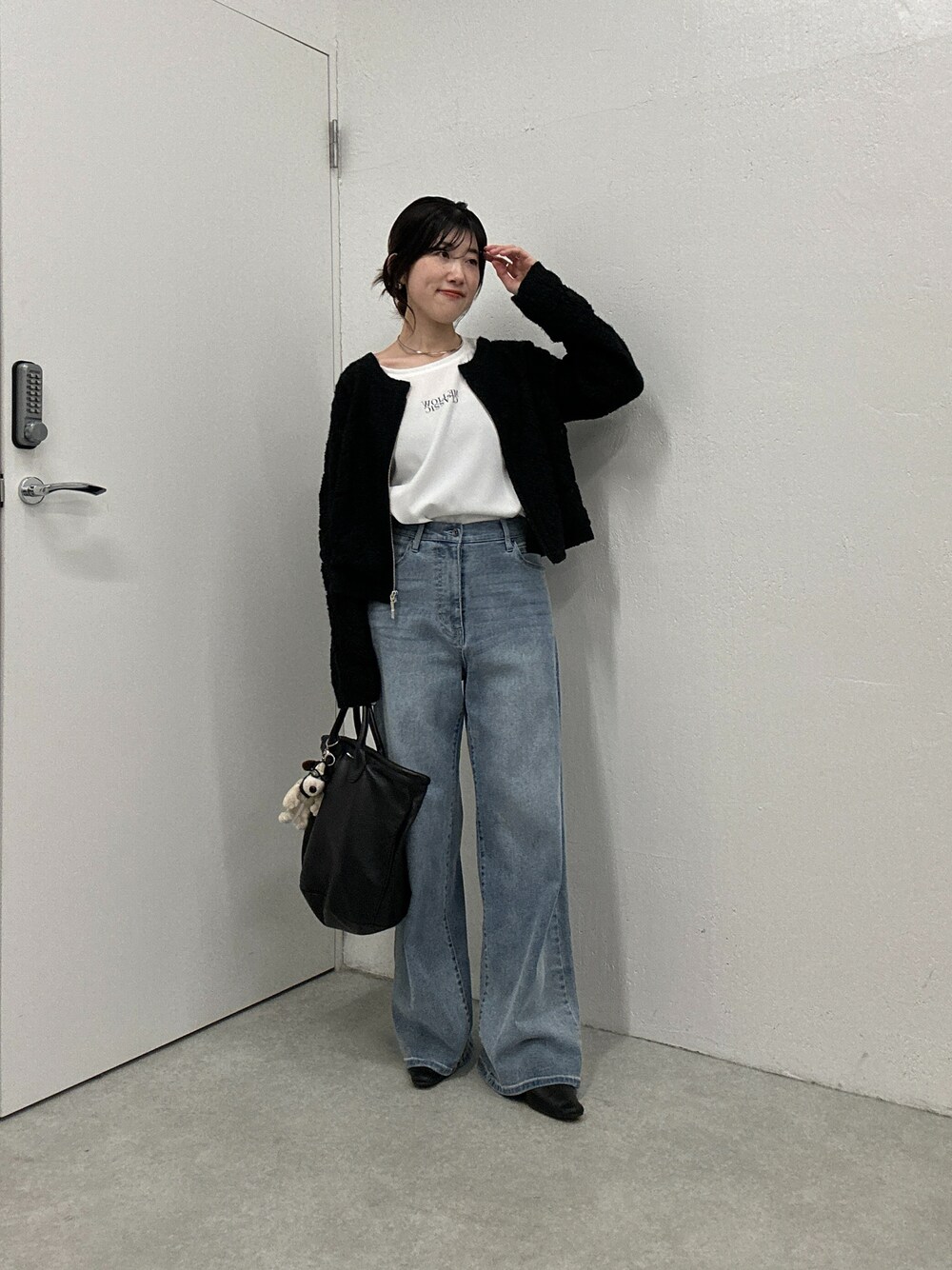 asamin(COLLAGE)のデニムパンツ「Q.anos/リラックススーパーワイド」を使ったコーディネート