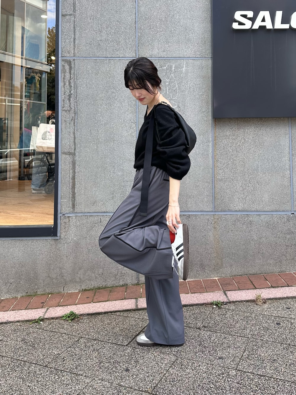 ふわふわで軽くて暖かいキーネックのニットとワイドパンツを使ったコーデ。 パンツはさりげなくストライプ柄でわシンプルだけどポイントになります。 シルエットがきれいでめちゃめちゃおすすめ◎