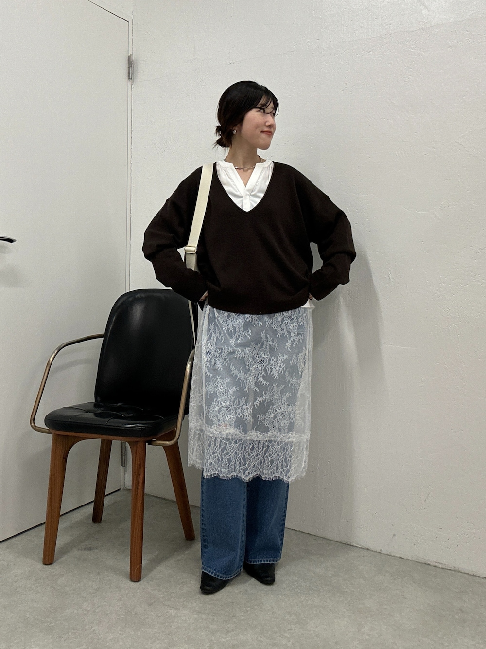 シンプルコーデにはレイヤードすることが多いです◎ 今回はレースの切り替えチュニックをレイヤード。 ブラウスとスカートのように見えて1枚だから楽してコーデを華やかにするのに使える!
