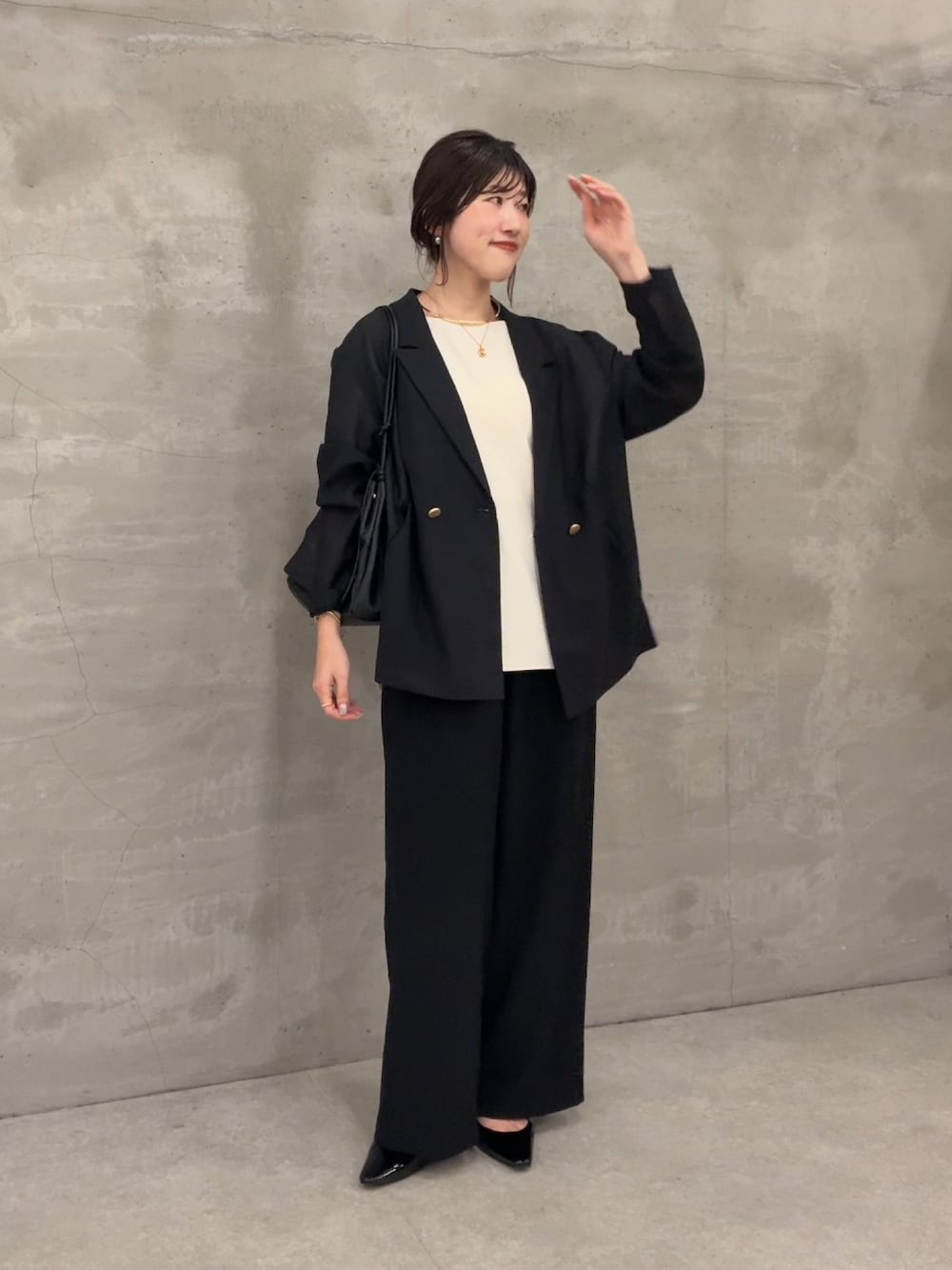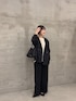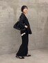 コラージュのメッシュジャケットを使ったコーデ。ジャージシリーズのトップスとワイドパンツと組み合わせてオフィスコーデをイメージしました! メッシュ素材で通気性があるから夏のオフィスコーデにぴったり! 嫌な透け感もないので大人の女性におすすめのアイテムです!