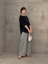 袖の筒が細めだからきれい目に着られるTシャツ。 素材もジョーゼット素材なのでブラウス見えしてくれるのも嬉しい◎ カジュアルにスウェットパンツと合わせても手抜き感が出ずにこなれて見えます。 パンツは1サイズを着用してます。