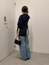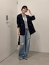 大人気のブルージュデニムのダメージデザインがお気に入り◎ カジュアルすぎる合わせだとラフに見えすぎちゃうのでジャケットを合わせて少しきれいめを意識。 インナーに合わせたロゴTシャツはコンパクトなシルエットなのでアウトスタイルでもかわいく決まります◎ デニムは1サイズを着用してます。