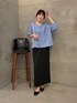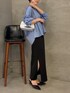襟元にギャザーが寄せられるドロスト付きで、首元の雰囲気を変えて楽しめるデザインシャツ。 少し抜いた感じで着ていただくのがバランスよくておすすめ。 わたしは少しだけギャザーを絞ってデコルテがほんのり見える感じの着方で着てみました! シワになりにくい生地なので扱いやすいのもうれしい!