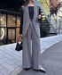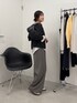 グレーのワントーンコーデは白インナーを挟むとメリハリが出て垢抜ける◎ レイヤードしてるブラウスはサテン素材でツヤが出せるから、白Tシャツを挟むよりもきれい見えしておすすめ! パンツはセットアップのボトムを使ってみました! ぶかっと履けるワイドシルエットがお気に入り。