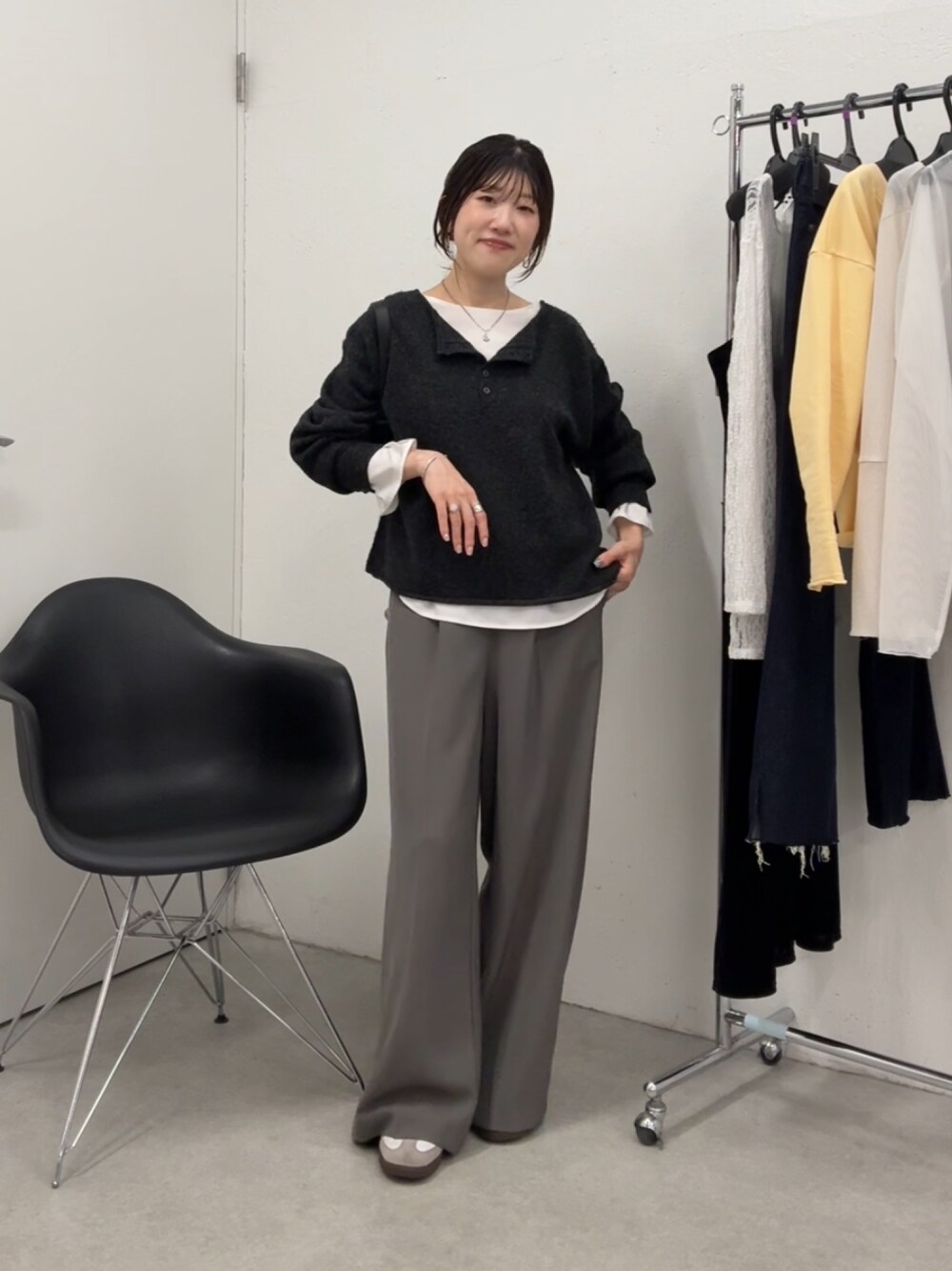 asamin(COLLAGE)のニット/セーター「2WAYヘンリーニット/WEB限定」を使ったコーディネート