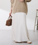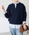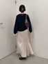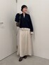 首元のジップによって抜け感が簡単に作れるジップスウェットライクニット。 目が詰まった毛羽たちのない生地なので今から春まで長く着られてコスパも抜群です◎ クリスマスを意識して少し華やかなコーデにしたかったのでシアーラメのカットソーをレイヤードしてみました。 シアーラメリブは着丈が長すぎないからジップスウェットとレイヤードしたときにもバランスよく着られます! スカートは1サイズを着用