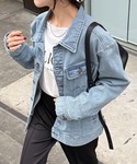 asamin(COLLAGE)のデニムジャケット「Q.anos/ストレッチ袖リブデニムジャケット」を使ったコーディネート