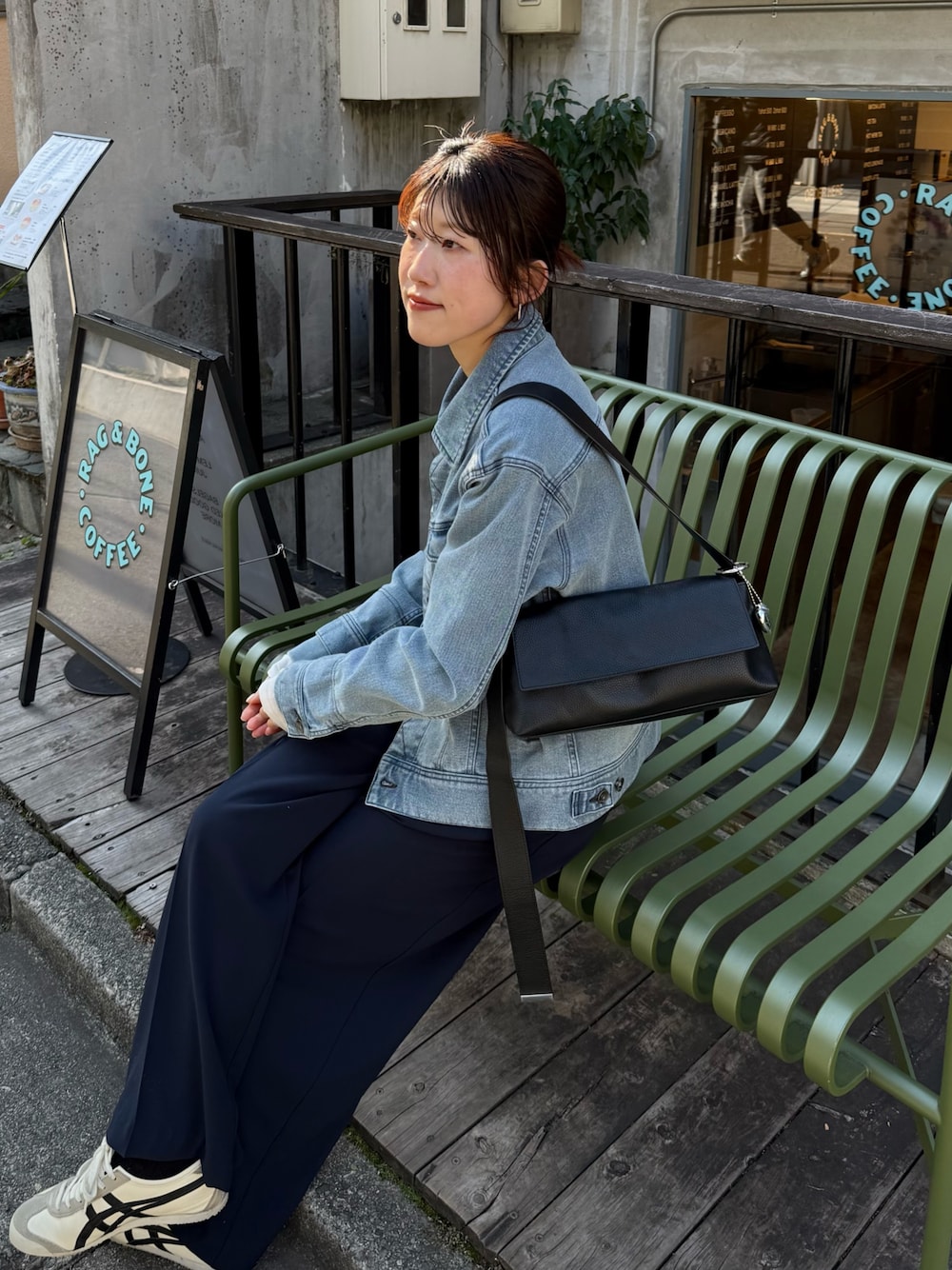 春の定番アイテムデニムジャケット。 ストレッチが効いてるからすごく着心地が良くてお気に入りなんです。 コンパクトなサイズの方のフリーサイズとワイドパンツやボリュームスカートを合わせるバランスが好きで、わたしはフリーサイズ推し◎ 袖口もリブなので腕まくりもしやすくて使い勝手の良さが魅力です。 パンツは1サイズを着用。 サラサラ素材で夏も涼しく履けるのとシワにもなりにくいからデイリー使いしやすいです。 私も実際にリアルバイして愛用中。 ウエストの後ろ側がゴムでキックバックがしっかりあるのでわたしはウエストが大きく感じることはないです。ちょうどよく履けてます!
