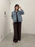 スキッパーシャツの上からデニムジャケットを羽織ったカジュアルコーデ。 シャツの着丈がコンパクトなのでインしなくてもおしゃれに決まるし、 私の身長でワイドパンツと合わせてもバランスよく着られました◎ シャツの生地も柔らかいからジャケットを上から羽織ってもアーム部分がごわつかなかったのもよかったです。 パンツは1サイズを着用。 ぺたんこのスニーカーを履いても引きずらずにちょうどよい着丈で履けたので 160センチ以上身長がある方はTMサイズがおすすめです。