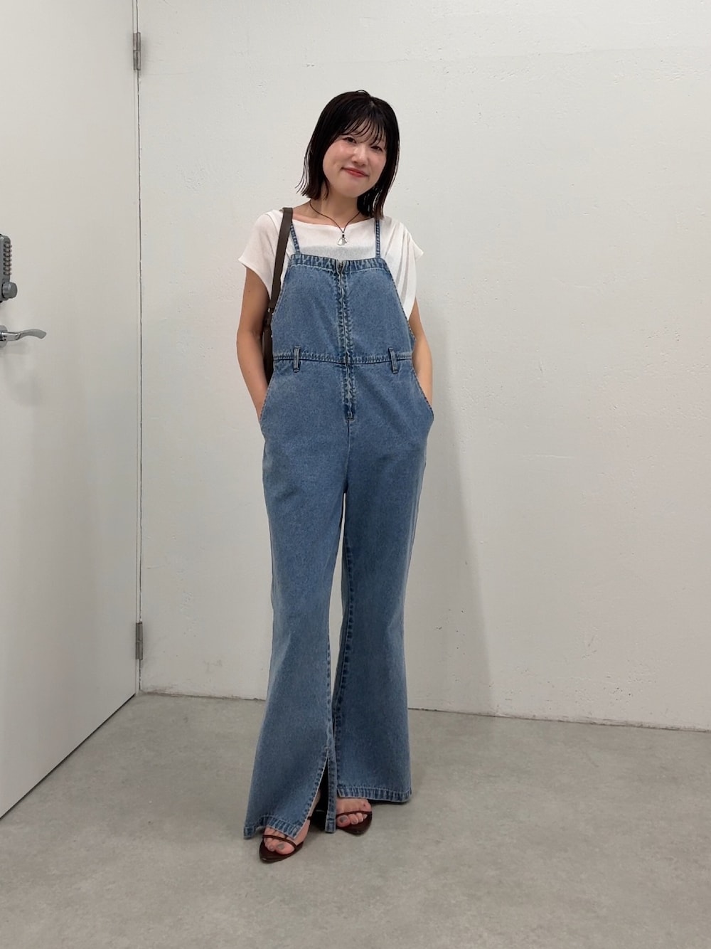 asamin(COLLAGE)のサロペット/オーバーオール「Q.anos/フレアデニムロンパース」を使ったコーディネート