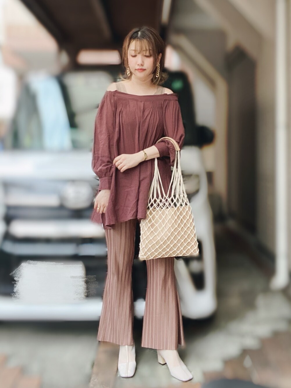 ykのシャツ/ブラウス「2way オフショルダー プルオーバーブラウス〈ボリューム袖〉」を使ったコーディネート