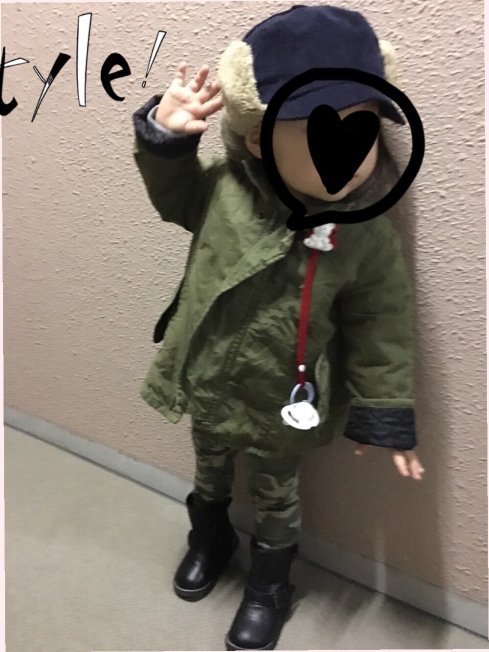 去年のコートとパンツ おしゃぶりが離せないちびちゃんw