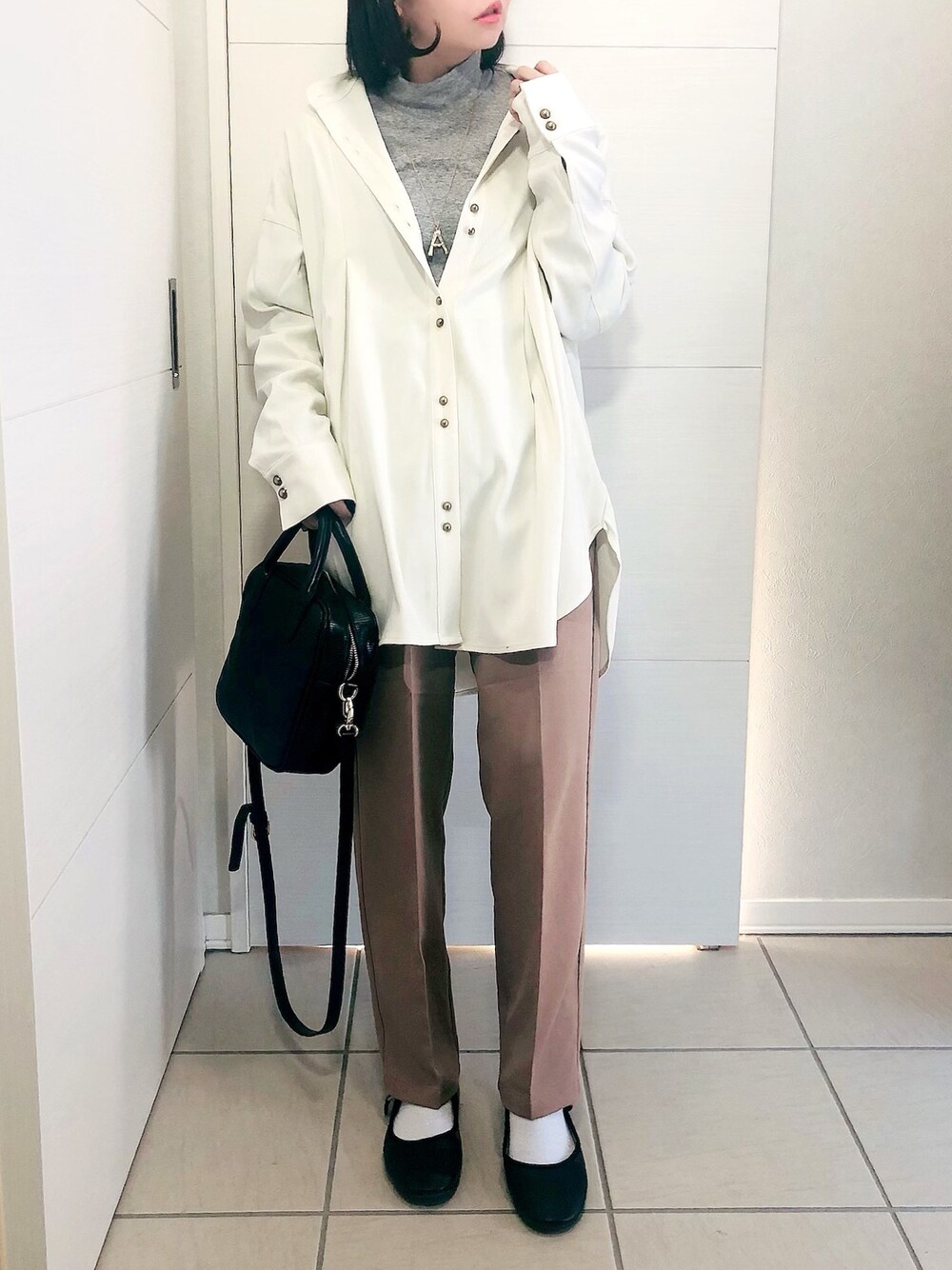 アンブルコーデ♡ .☆.。.:.+*:゚+。 .゚・*..☆.。.:*.☆.。.:.+*:゚+。 .゚・*..☆.。.:* ご覧いただき、ありがとうございます♡ いいね、お気に入り、フォロー、 とっても嬉しいです♡ .☆.。.:.+*:゚+。 .゚・*..☆.。.:*.☆.。.:.+*:゚+。 .゚・*..☆.。.:* おはようございます♡ 【𝙰𝚖𝚋𝚛𝚎 𝙽𝚎𝚒𝚐𝚎】☆ WEB/EC限定商品☆ ➪ スウェードライクタックシャツ スウェード調の厚手のタックシャツ♡ しっかりした素材感で高見えします(*´艸`*)♡ ほど良く厚手で今時期はトップスとして、 春になったら羽織りとして着ても👍💕 アンティークゴールドのボタンが、 またオシャレでとっても可愛いです♡ ※色々なシャツの着方してみたので、 良かったら小窓も見てみてください♡ ➪ ハイウエストタックパンツ ハイウエストで脚長効果抜群のパンツは、 シルエットがキレイで細見えします♡ 低身長の私だとフルレングスになりました♡ 足のラインを拾わないのも嬉しいポイント(*´艸`*)♡ カラーは大人っぽいモカにしてみました♡ 🌟本日𝚉𝙾𝚉𝙾𝚃𝙾𝚆𝙽でクーポン出てました🌟 【𝚄𝙽𝙸𝚀𝙻𝙾】 ➪ソフトタッチハイネックT 【𝚂𝚅𝙴𝙲】 ➪カンフーシューズ 【𝙲𝙾𝙻𝙾𝙽𝚈𝟸𝟷𝟹𝟿】 ➪ リザード柄2WAYミニボストンバッグ/ショルダーバッグ アンブルネージュさんのシャツとパンツで コーデしてみました♡ ✼••┈┈┈┈┈┈┈┈┈┈┈┈┈┈┈┈••✼ 光(みつ)ちゃん♡izumiちゃん♡satomiちゃん♡ rhさん♡マキシさん♡ぱぱさん♡ chicoちゃん♡まる☺︎︎ちゃん♡如月ももさん♡ 素敵なフォルダに入れて下さり、 ありがとうございます⸜(*ˊᵕˋ*)⸝💕✨ とっても嬉しいです😭❤️❤️❤️ ✼••┈┈┈┈┈┈┈┈┈┈┈┈┈┈┈┈••✼ インスタにも気軽に遊びに来て下さい( ´罒`*)✧" 𝗜𝗻𝘀𝘁𝗮𝗴𝗿𝗮𝗺(σ•̀ᴗ•́)σ▷▶︎𝗮𝘀𝗮𝟱_𝟭𝟬𝘄𝗲𝗮𝗿 いつもありがとうございます♡ .☆.。.:.+*:゚+。 .゚・*..☆.。.:*.☆.。.:.+*:゚+。 .゚・*..☆.。.:*