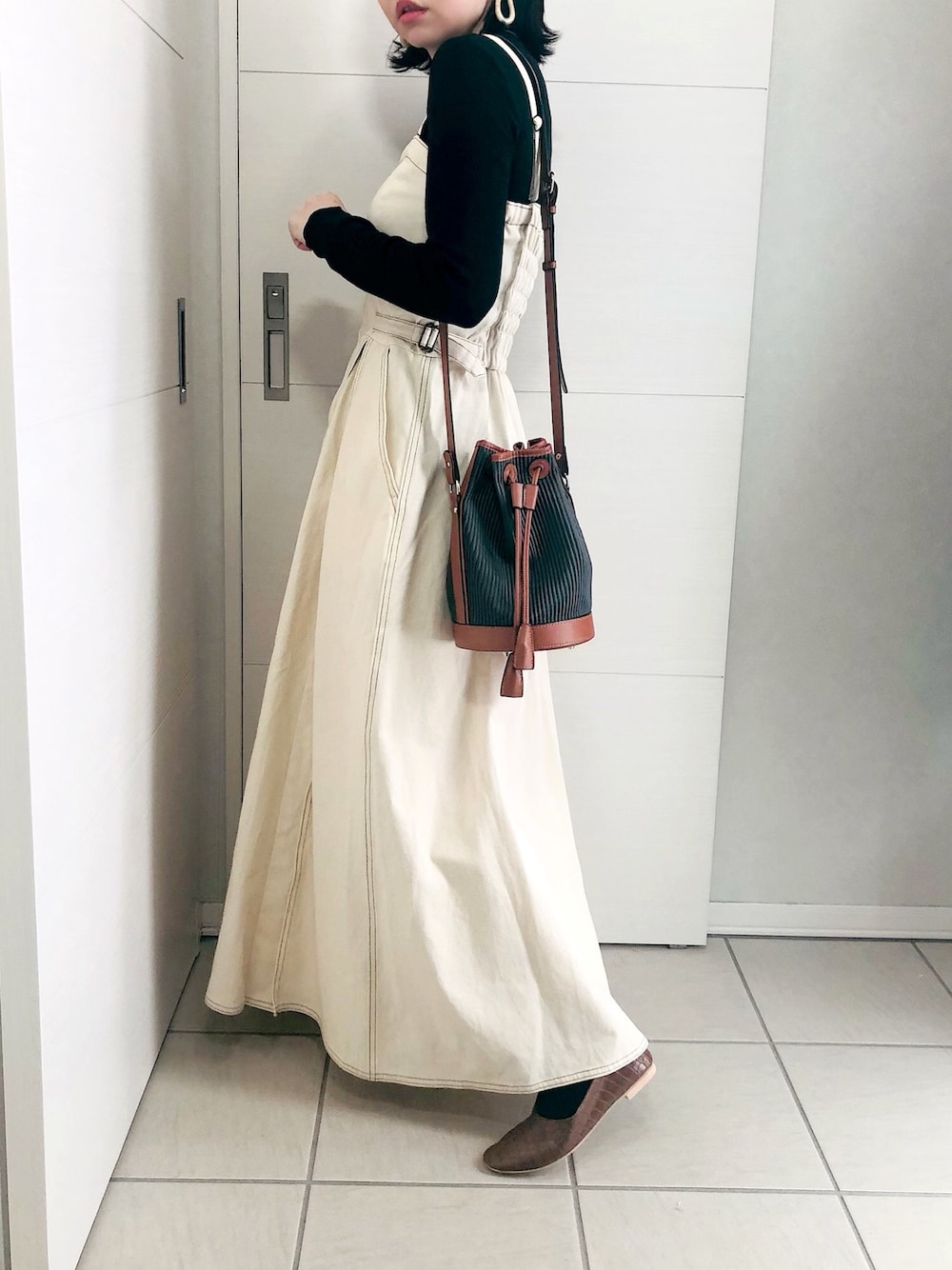 大人のジャンスカコーデ♡ .☆.。.:.+*:゚+。 .゚・*..☆.。.:*.☆.。.:.+*:゚+。 .゚・*..☆.。.:* ご覧いただき、ありがとうございます♡ いいね、お気に入り、フォロー、 とっても嬉しいです♡ .☆.。.:.+*:゚+。 .゚・*..☆.。.:*.☆.。.:.+*:゚+。 .゚・*..☆.。.:* こんにちは♡ 本日2投稿目、失礼します🙇♀️ 【𝚄𝚁𝙱𝙰𝙽 𝚁𝙴𝚂𝙰𝚁𝙲𝙷 𝚂𝚘𝚗𝚗𝚢 𝙻𝚊𝚋𝚎𝚕】 ➪ フィットフレアジャンパースカート お気に入りのジャンパースカート♡ 子どもっぽくなりがちなジャンスカも、 これなら大人っぽく着られます!! アイボリーで春らしく♡ デニムなので厚手で、透け感はありません♡ 上半身はフィットするデザインで、 スカートはフレアなので脚長効果が抜群です♡ 低身長の方でもバランス良く着られます(*´艸`*)♡ 【𝚛𝚙𝚜】 ➪ プチハイネックリブニットプルオーバー 【𝚖𝚒𝚗𝚒𝚊】 ➪ スクエアトゥ 2WAY バブーシュ/フラットシューズ ジャンパースカートをシンプルに 大人っぽくコーデしてみました♡ 𝗜𝗻𝘀𝘁𝗮𝗴𝗿𝗮𝗺(σ•̀ᴗ•́)σ▷▶︎𝗮𝘀𝗮𝟱_𝟭𝟬𝘄𝗲𝗮𝗿 いつもありがとうございます♡ .☆.。.:.+*:゚+。 .゚・*..☆.。.:*.☆.。.:.+*:゚+。 .゚・*..☆.。.:*