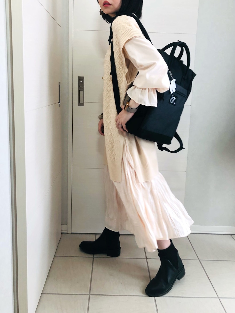 ワンピースコーデ♡ .☆.。.:.+*:゚+。 .゚・*..☆.。.:*.☆.。.:.+*:゚+。 .゚・*..☆.。.:* ご覧いただき、ありがとうございます♡ いいね、お気に入り、フォロー、 とっても嬉しいです♡ .☆.。.:.+*:゚+。 .゚・*..☆.。.:*.☆.。.:.+*:゚+。 .゚・*..☆.。.:* こんにちは♡ 本日2投稿目、失礼します🙇♀️ 【𝙲𝙾𝚃𝙾𝚁𝙸𝙲𝙰.】 ➪ ワッフルニットベスト×フレアワンピース お気に入りのセットアイテムワンピース♡ 白桃のようなカラーが可愛い~♡ ニットベストとワンピースのセットで、 別々に着られます♡ 毎回言ってますが、お袖のフレアが 可愛すぎて( ´͈ ᵕ `͈ )♡ 低身長さんにもオススメの丈感です🎵 【𝚖𝚘𝚣】 ➪ moz(モズ) ハンドルリュックサック ZZEI-01 今朝と同じリュック~♡ カジュアルにもガーリーにも◎ ヘラジカモチーフのチャームがお気に入り♡ ママさんにも学生さんにもオススメです♡ 【𝙻𝙴𝙿𝚂𝙸𝙼】 ➪ ソックスショートブーツ ガーリーなワンピースを カジュアルに着てみました💓 𝗜𝗻𝘀𝘁𝗮𝗴𝗿𝗮𝗺(σ•̀ᴗ•́)σ▷▶︎𝗮𝘀𝗮𝟱_𝟭𝟬𝘄𝗲𝗮𝗿 いつもありがとうございます♡ .☆.。.:.+*:゚+。 .゚・*..☆.。.:*.☆.。.:.+*:゚+。 .゚・*..☆.。.:*