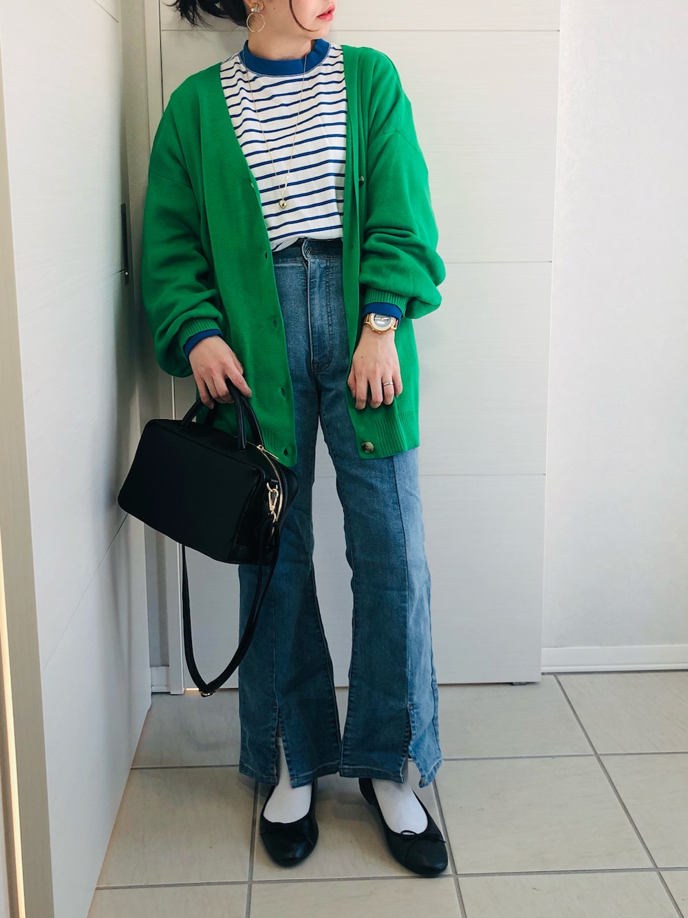 こんにちは♡ 本日2投稿目です♥ ✽.。.:*・゚ ✽.。.:*・゚ ✽.。.:*・゚ ✽.。.:*・゚ ✽.。.:*・゚ 𝗜𝗻𝘀𝘁𝗮𝗴𝗿𝗮𝗺(σ•̀ᴗ•́)σ▷▶︎𝗮𝘀𝗮𝟱_𝟭𝟬𝘄𝗲𝗮𝗿 ✽.。.:*・゚ ✽.。.:*・゚ ✽.。.:*・゚ ✽.。.:*・゚ ✽.。.:*・゚ \グリーン💚とブルー💙/ 【ANGIE】 ➪ 12G Vネックオーバーサイズカラーカーディガン お気に入りのカーディガン💚 オーバーサイズでゆるっと可愛い( ´͈ ᵕ `͈ )♡ Vネックなので、首元すっきり♥ ぱっと発色性の良いカラーがお気に入り♡ 速乾性のあるさらりとした素材なので、 オールシーズン着られます🎵 ヒップまで隠れる丈が嬉しい(*ºωº)σ 【coen】 ➪ ボーダービッグロンT 【RE:EDIT】 ➪ リサイクルキックフレアスリットデニム 【menue】 ➪ ラウンドトゥ バレエシューズ 【RODE SKO】 ➪ ミディアムボストンショルダーバッグ またまた春の妄想コーデ💚💙 バレエシューズ🩰早くはきたい(´ε` )♥ #pr ご覧いただき、ありがとうございます♡ いいね、お気に入り、フォロー、 とっても嬉しいです♡ ✽.。.:*・゚ ✽.。.:*・゚ ✽.。.:*・゚ ✽.。.:*・゚ ✽.。.:*・゚