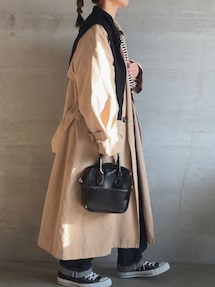 ❁⃘asa❁⃘のトレンチコート「【2サイズ展開】キャンディ袖ビッグトレンチコート」を使ったコーディネート