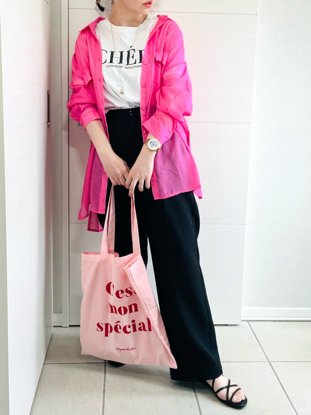 おはようございます♡ ✽.。.:*・゚ ✽.。.:*・゚ ✽.。.:*・゚ ✽.。.:*・゚ ✽.。.:*・゚ 𝗜𝗻𝘀𝘁𝗮𝗴𝗿𝗮𝗺(σ•̀ᴗ•́)σ▷▶︎𝗮𝘀𝗮𝟱_𝟭𝟬𝘄𝗲𝗮𝗿 ✽.。.:*・゚ ✽.。.:*・゚ ✽.。.:*・゚ ✽.。.:*・゚ ✽.。.:*・゚ \おピンク🎀/ 【tiptop】 ➪ シアーBIGシャツ ビッグシルエットのシアーシャツ🎀 こんなカラーのシアーシャツ欲しかった!! ぱっと目を惹くピンクカラーがお気に入り♥️ コーデのポイントになるし、 顔もぱっと明るくなる🎵 シアーの程よい透け感も季節感あって◎ これから暑くなる季節にぴったり♥ さっと羽織ってもいいし、肩掛けや たすき掛けしても◎ 🌟期間限定ZOZOセールで24%offになってました🌟 【tiptop】 ➪ 単色ロゴBIGTシャツ 【Re:EDIT】 ➪ [神山まりあさん着用]カットツイルセンタープレスカラースラックス 【apres jour mignon】 ➪ ロゴトートバッグ【ZOZOTOWN限定アイテム】 ピンクカラーで夏コーデ💓🖤 ピンクにブラック、大好きな組み合わせ🎵 #pr ✼••┈┈┈┈┈┈┈┈┈┈┈┈┈┈┈┈••✼ 昨日も素敵なフォルダに入れて下さり、 ありがとうございます⸜(*ˊᵕˋ*)⸝💕✨ とっても嬉しいです🥺❤️❤️❤️ いつもありがとうございます🌷🌷🌷 ✼••┈┈┈┈┈┈┈┈┈┈┈┈┈┈┈┈••✼ ご覧いただき、ありがとうございます♡ いいね、お気に入り、フォロー、 とっても嬉しいです♡ ✽.。.:*・゚ ✽.。.:*・゚ ✽.。.:*・゚ ✽.。.:*・゚ ✽.。.:*・゚