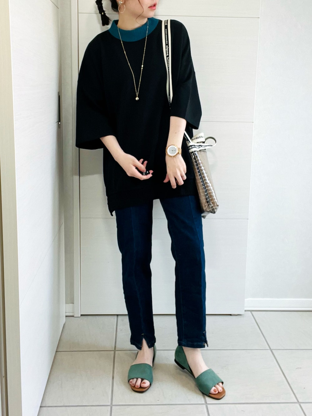 こんにちは♡ 本日2投稿目です♥ ご覧いただき、ありがとうございます♡ ✽.。.:*・゚ ✽.。.:*・゚ ✽.。.:*・゚ ✽.。.:*・゚ ✽.。.:*・゚ \カジュアルコーデ♡/ 【Confirm / コンファーム】 ➪ リブカラービッグシルエット 首元の配色がポイントのカットソー♡ ポンチ素材で柔らかく、着心地も良き◎ 薄すぎず暑すぎない生地感もおすすめポイント♥ ゆったり大きめのビッグシルエットが可愛い🎵 ユニセックスなので、夫婦やカップル、 お友だち同士でのシミラールックにもオススメ♥ 🌟期間限定ZOZOsaleで10%offになってます🌟 【Re:EDIT】 ➪ [神山まりあさん着用]センタースリットリサイクルデニム 【RODE SKO】 ➪ ELLEN セパレートフラットサンダル ゆるっと配色カットソーでカジュアルコーデ💚🖤 #pr いいね、お気に入り、フォロー、 とっても嬉しいです♡ 👇Instagramはこちら👇 𝗜𝗻𝘀𝘁𝗮𝗴𝗿𝗮𝗺(σ•̀ᴗ•́)σ▷▶︎𝗮𝘀𝗮𝟱_𝟭𝟬𝘄𝗲𝗮𝗿 ✽.。.:*・゚ ✽.。.:*・゚ ✽.。.:*・゚ ✽.。.:*・゚ ✽.。.:*・゚