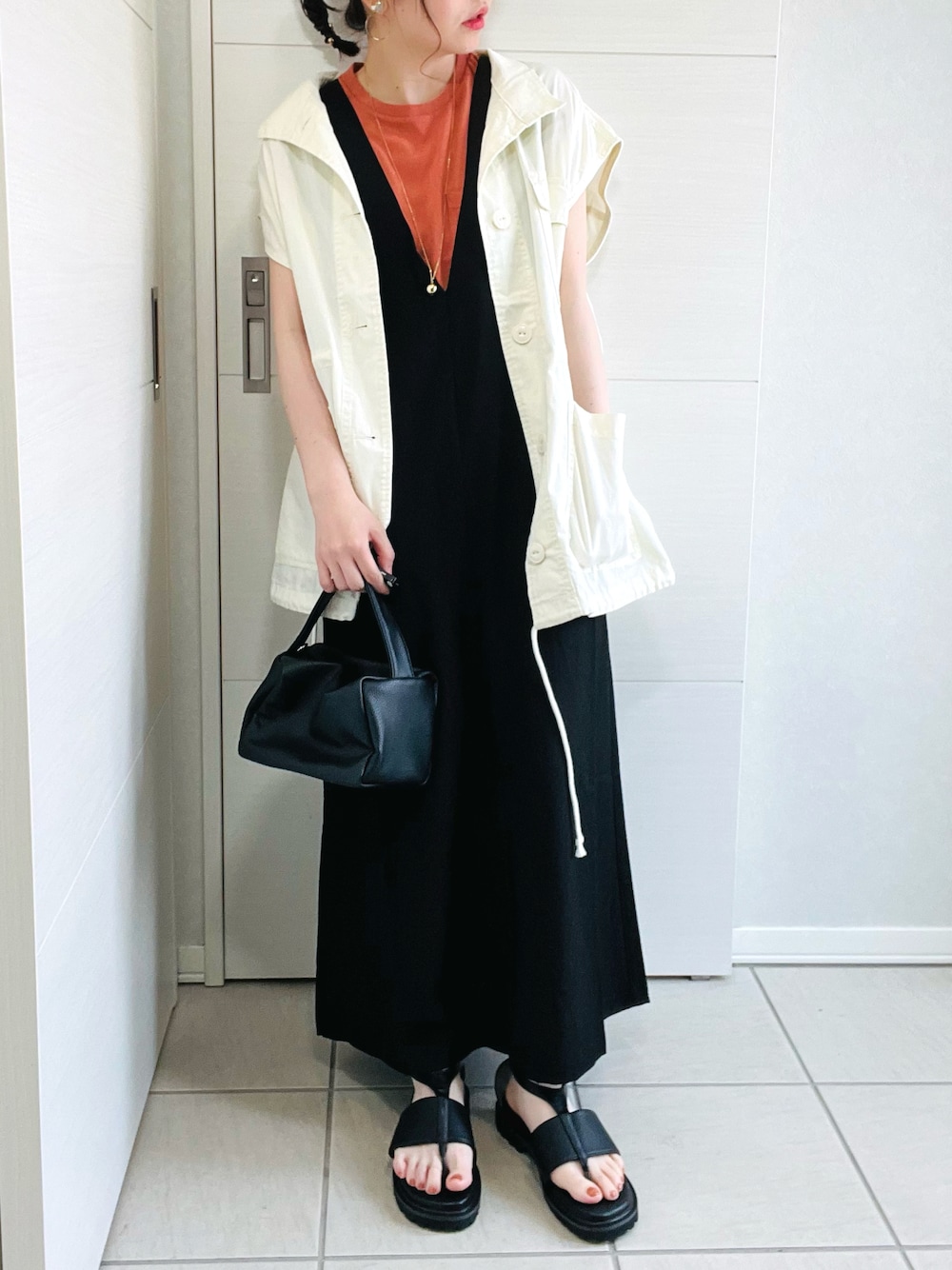 おはようございます♡ いつもご覧いただき、ありがとうございます♡ ✽.。.:*・゚ ✽.。.:*・゚ ✽.。.:*・゚ ✽.。.:*・゚ ✽.。.:*・ \ベストコーデ♡/ 【tiptop】 ➪ ミリタリーベスト 今季マストアイテムのミリタリーベスト♡ ゆるっと大きめが可愛いー!! コーデに取り入れるだけでトレンド感アップ⤴️ 肩が少し隠れて、華奢感出ます(*´艸`*)!! サイドの大きめポケットもポイント🎵 裾に紐が付いていて、絞って印象を変えることも可◎ 秋口になっても使えるから、おすすめ♡ 🌟本日ZOZOで1000円offクーポン出てます🌟 【ANGIE】 ➪ リネンタッチVネックジャンパースカート お気に入りのジャンスカ着回し🎵 夏にぴったりな涼し気素材で、暑い日も快適🎵 深めのVネックで大人っぽい♥ トップスよって雰囲気も変わるので、 着回し力も抜群です♡ 秋口は長袖と合わせても◎ ロングシーズン着られるのも嬉しいポイントです🎵 🌟本日ZOZOで1000円offクーポン出てます🌟 【Crisp】 ➪ フレンチポケットTシャツ 【SESTO】 ➪ 厚底タンクソールの高密度クッションインソールトングストラップサンダル ミリタリーベストとワンピを合わせて、 大人カジュアルコーデにしてみました🤍🖤🧡 トップスのオレンジ🍊でポイント🎵 #pr いいね、お気に入り、フォロー、 とっても嬉しいです♡ ✼••┈┈┈┈┈┈┈┈┈┈┈┈┈┈┈┈••✼ もんちゃん♡ゆこまるちゃん♡Kyoさん♡ mangooseさん♡RA★SEさん♡moonさん♡ こあらちゃん♡yu.ちゃん♡lenlen23さん♡ mariさん♡yuuちゃん♡Syoneさん♡MR.Mさん♡ 昨日も素敵なフォルダに入れて下さり、 ありがとうございます⸜(*ˊᵕˋ*)⸝💕✨ とっても嬉しいです🥺❤️❤️❤️ お名前漏れありましたら、ごめんなさい🙏💦 本当にありがとうございます🥰💕 ✼••┈┈┈┈┈┈┈┈┈┈┈┈┈┈┈┈••✼ ぜひInstagramにも遊びに来てください♡ 𝗜𝗻𝘀𝘁𝗮𝗴𝗿𝗮𝗺(σ•̀ᴗ•́)σ▷▶︎𝗮𝘀𝗮𝟱_𝟭𝟬𝘄𝗲𝗮𝗿 ✽.。.:*・゚ ✽.。.:*・゚ ✽.。.:*・゚ ✽.。.:*・゚ ✽.。.:*・