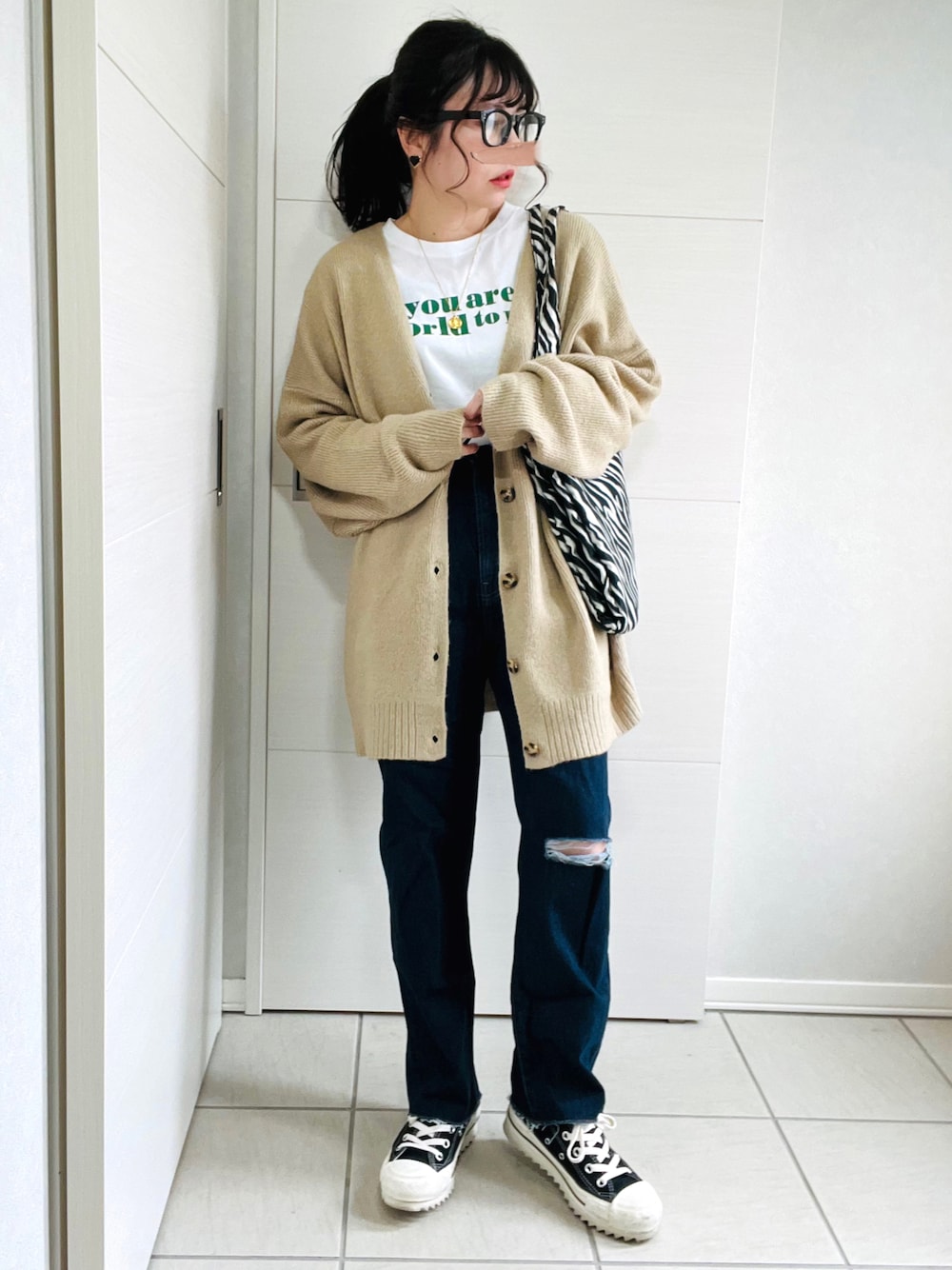 こんばんは♡ ご覧いただき、ありがとうございます♡ ✽.。.:*・゚ ✽.。.:*・゚ ✽.。.:*・゚ ✽.。.:*・゚ ✽.。.:*・゚ \ニットカーディガン🐵/ ●カーディガン:#angie_vintage ●トップス:#discoat ●パンツ:#apresjourmignon ●シューズ:#CONVERSE ●バッグ:#LOWRYSFARM ●イヤリング:#LOWRYSFARM 《オーバーサイズVネックニットカーディガン》 @angie_vintage_official ゆるっと可愛いオーバーサイズニットカーディガン♡ パープル💜を持ってたけど、新たに ベージュ🐵が仲間入り!! ゆるっと大きめが可愛いんです♡♡ 柔らかくふわふわとしたニットで、 肌触りも良き(๑•̀ㅂ•́)و✧ ヒップもすっぽりな丈感も好きポイント♥ 前は開けても閉めても可愛いですよ✩.*˚ 春先の肌寒い時期まで着られます🫶 しかもプチプラだから、これまた 色違いで欲しくなるやーつ🫣 ぜひお気に入りのカラーを見つけてみてね♥️ 《【WEB限定】アメリカンロゴロングTシャツ》 @discoat_official 《ダメージデニム》 @apres_mignon 《3ROOMトートバッグ》 @lowrysfarm_official 《レトロハートクリップ》 @lowrysfarm_official ニットカーディガンでシンプルカジュアルコーデ♥️ 最近お気に入りの伊達メガネが良い感じに 顔を隠してくれる🫣✨ ダメージデニムはちょいと寒かった🥶w ダメージ部分から隙間風が、、、🤣 #pr いいね、お気に入り、フォロー、 とっても嬉しいです♡ 👇Instagramはこちら👇 𝗜𝗻𝘀𝘁𝗮𝗴𝗿𝗮𝗺(σ•̀ᴗ•́)σ▷▶︎𝗮𝘀𝗮𝟱_𝟭𝟬𝘄𝗲𝗮𝗿 ✽.。.:*・゚ ✽.。.:*・゚ ✽.。.:*・゚ ✽.。.:*・゚ ✽.。.:*・゚