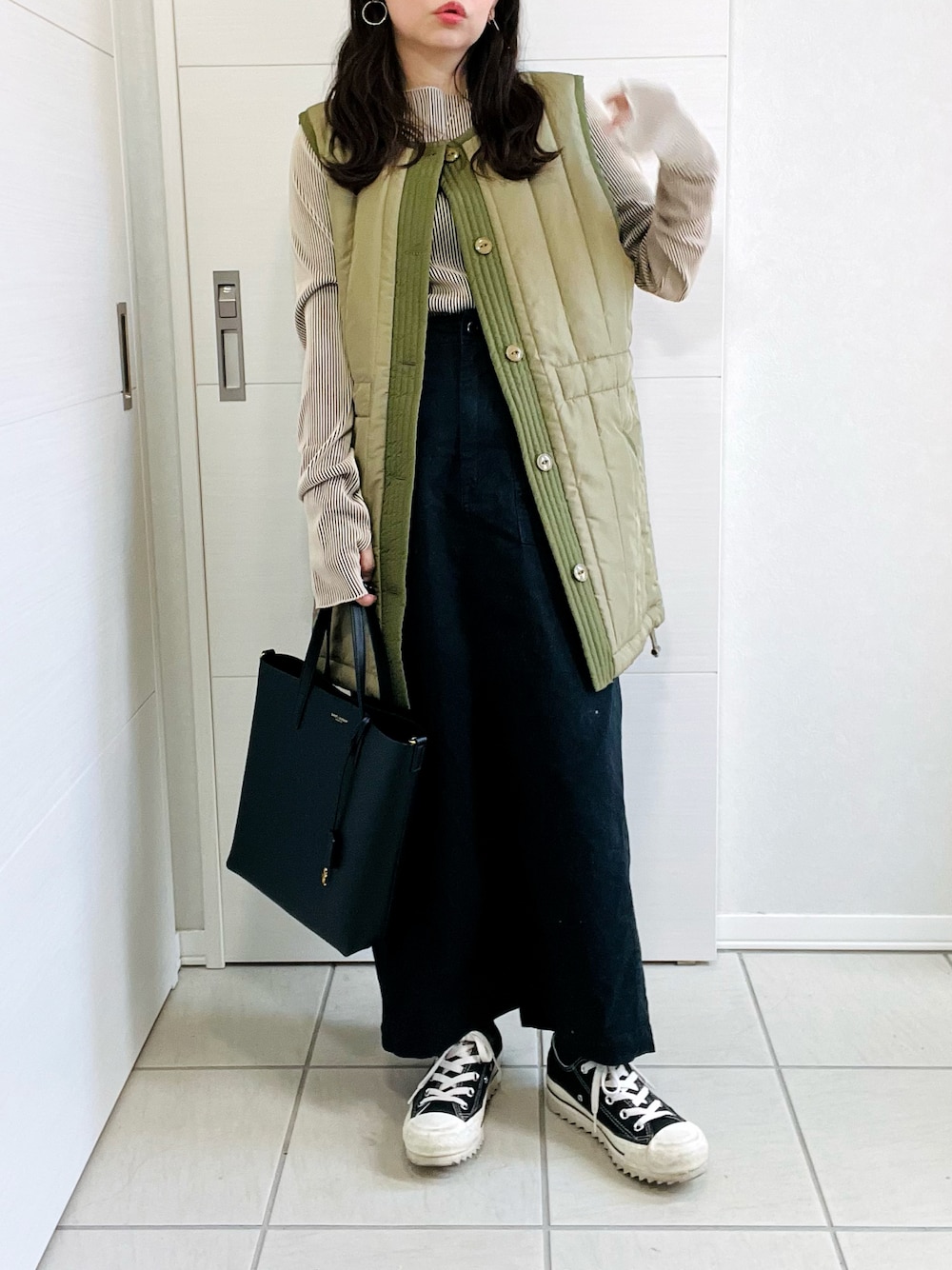 こんにちは♡ ご覧いただき、ありがとうございます♡ ✽.。.:*・゚ ✽.。.:*・゚ ✽.。.:*・゚ ✽.。.:*・゚ ✽.。.:*・゚ 《ミリタリーキルティングベスト》 【Crisp】オリーブ、freeサイズ @crisp_official さんの可愛いキルティングベスト♡ コンパクトなシルエットで、細見えする!! ウエストや裾が絞れるようになってて、 シルエット変化も楽しめちゃう♪ メインとしても、寒くなってきたら、 アウターの下のインナーとしても◎ 🌟本日ZOZOで1000円offクーポン出てます🌟 ●ベスト:#crisp ●トップス:#apretro ●シューズ:#CONVERSE ●バッグ:#SaintLaurent #PR いいね、お気に入り、フォロー、 とっても嬉しいです♡ 👇Instagramはこちら👇 𝗜𝗻𝘀𝘁𝗮𝗴𝗿𝗮𝗺(σ•̀ᴗ•́)σ▷▶︎𝗮𝘀𝗮𝟱_𝟭𝟬𝘄𝗲𝗮𝗿 ✽.。.:*・゚ ✽.。.:*・゚ ✽.。.:*・゚ ✽.。.:*・゚ ✽.。.:*・゚