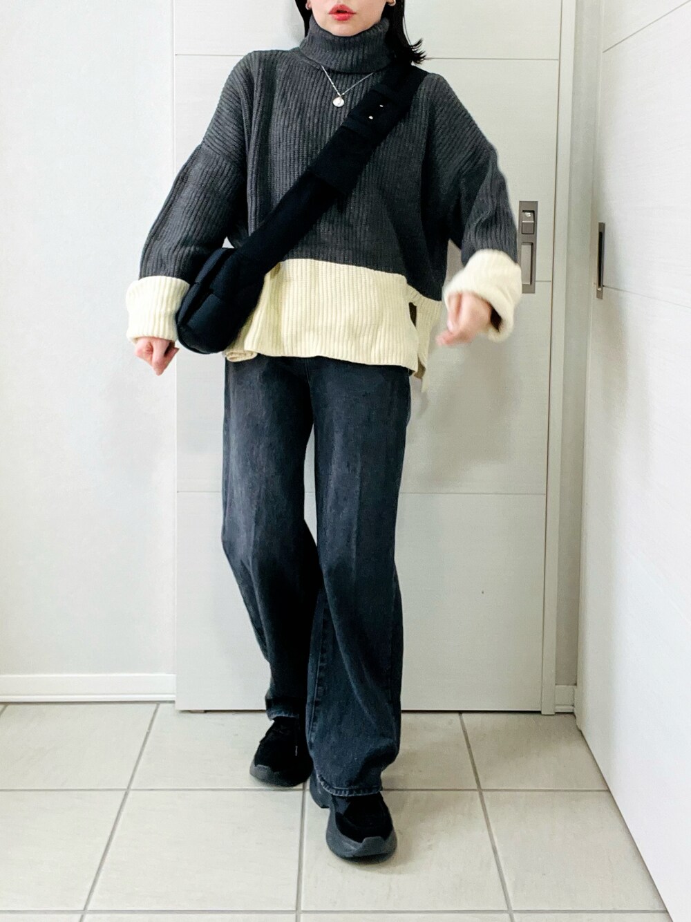 ❁⃘asa❁⃘のニット/セーター「【インフルエンサー 森暖奈プロデュースアイテム】バイカラーハイネックニット」を使ったコーディネート