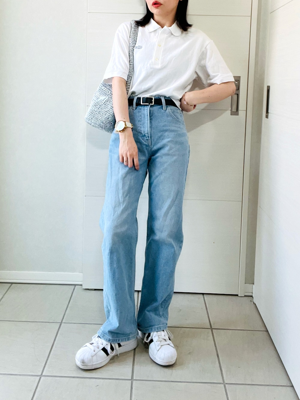 ❁⃘asa❁⃘のポロシャツ「ヘビーウェイト鹿の子 ワイド クロップド丈 半袖ポロシャツ」を使ったコーディネート