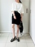 ❁⃘asa❁⃘のTシャツ/カットソー「モックネックゆったりダンボール半袖Tee」を使ったコーディネート