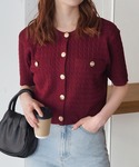 ❁⃘asa❁⃘のカーディガン/ボレロ「金釦半袖ケーブルカーディガン」を使ったコーディネート