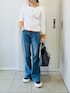 ❁⃘asa❁⃘のデニムパンツ「[DENIM COLLECTION][2026S/S COLLECTION][低身長/高身長/大きいサイズ有]ストレッチデニムキックフレアパンツ」を使ったコーディネート
