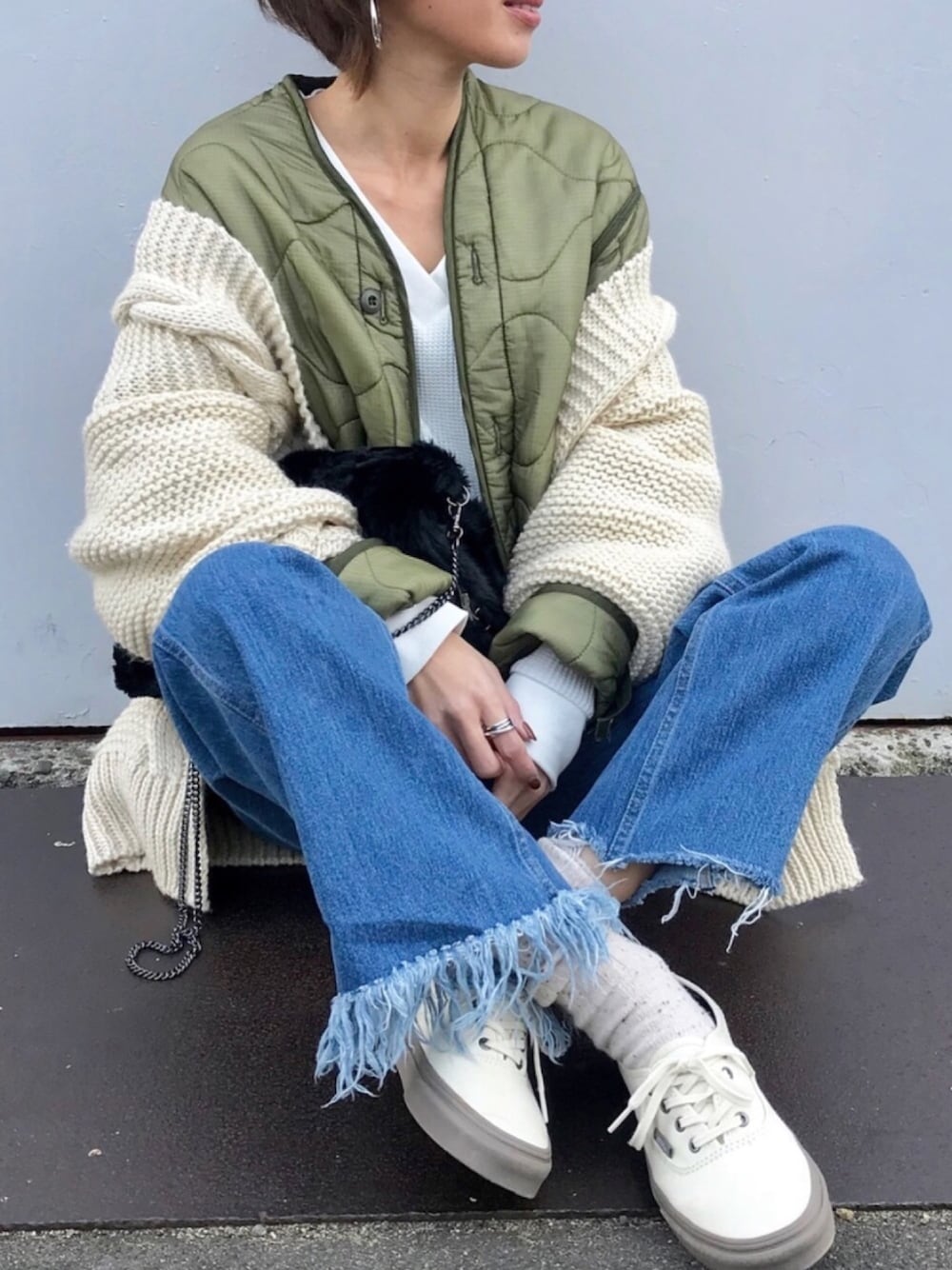 ライナージャケットの上から大きめカーデ💓 めちゃあったかい☺️💓 カーデは、ざっくりガウンみたいな感じに着たかったのでLサイズを購入しました❤️