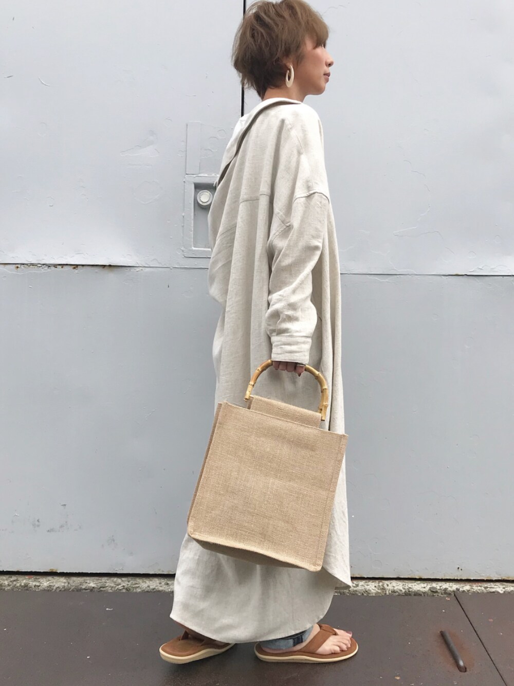 リネンガウンに、ビーサンの夏コーデ❤️ インスタ @kumika_iiio2