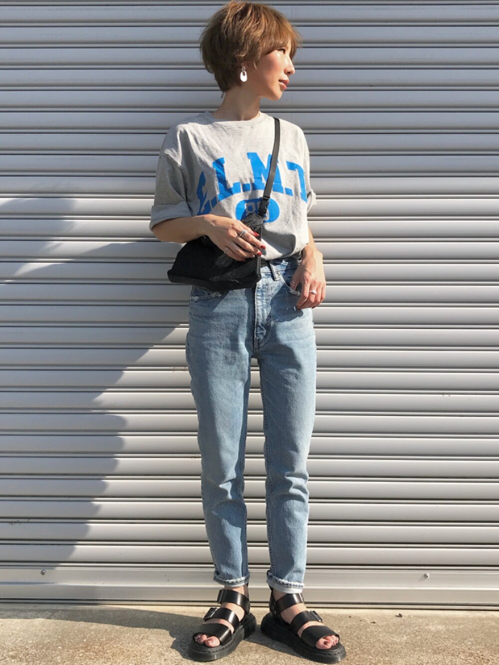 家族でお出かけのカジュアルコーデ❤️ ドクターマーチンのサンダル初おろし😊 重みがかっこいー❤️ インスタ @kumika_iiio2