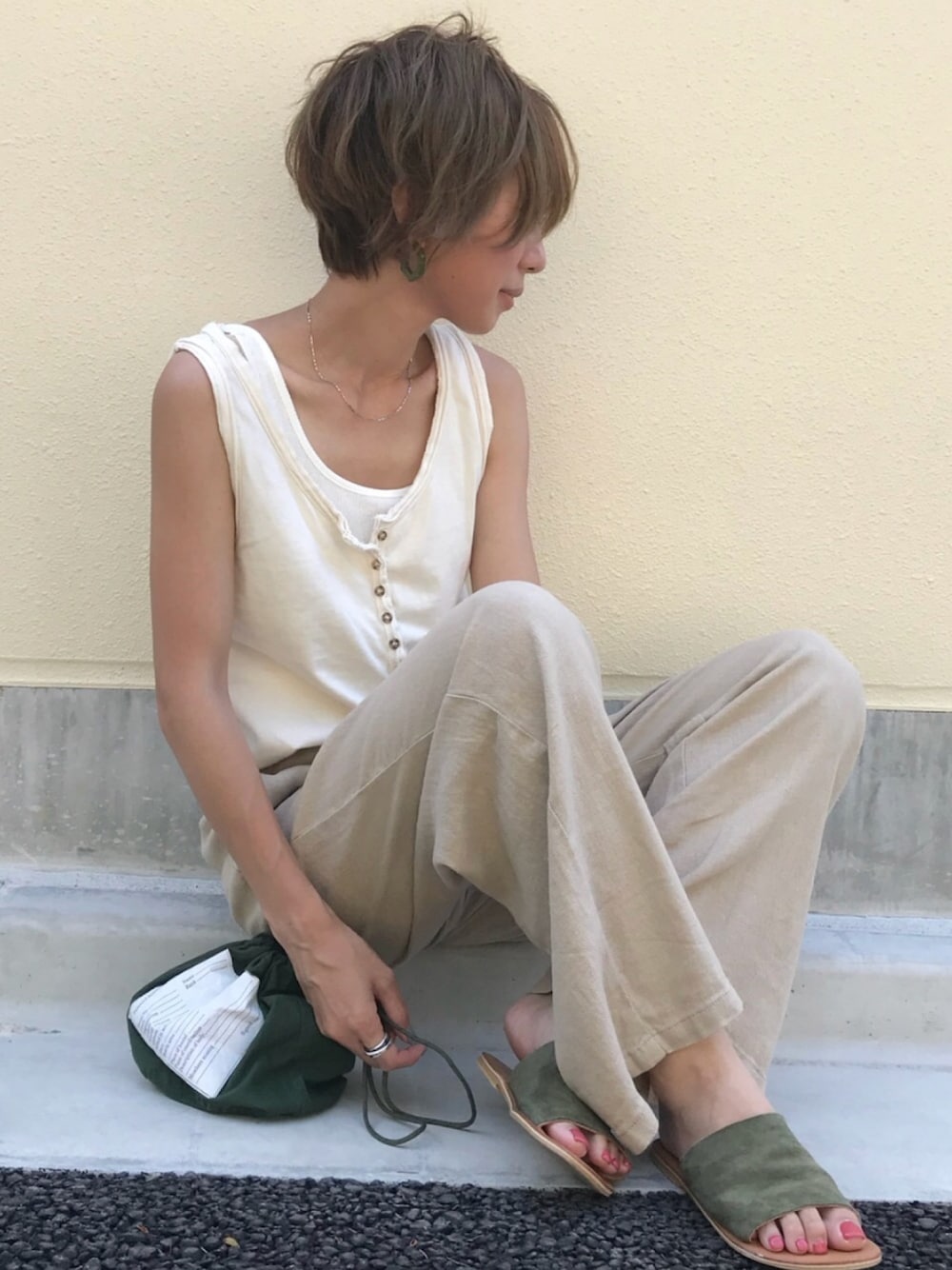 Kumika☆のタンクトップ「RED CHOP WORKS (レッドチョップワークス) ヘンリータンクトップ×テレコタンクトップ」を使ったコーディネート