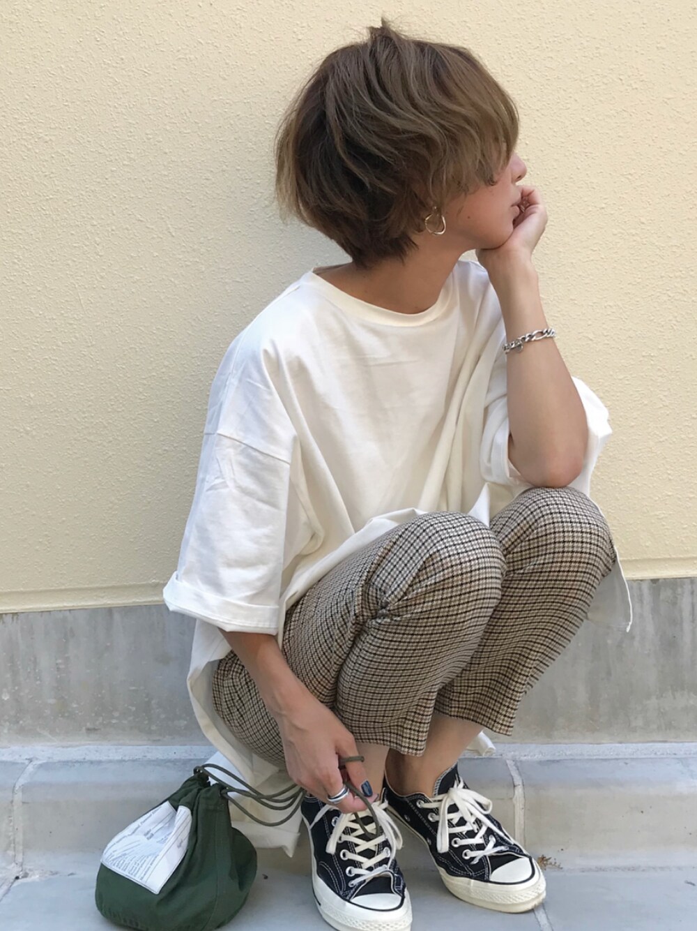 Tシャツワンピとチェックパンツ❤️ インスタ @kumika_iiio2