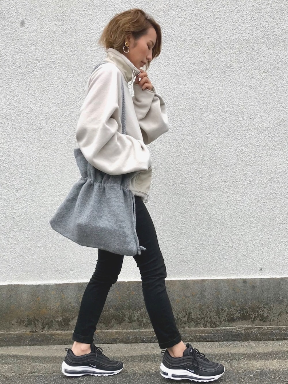 フリースとニットバッグの暖か素材で、 明るめコーデ❤️ このバッグ、いっぱい入るし可愛い😍 インスタ @kumika_iiio2