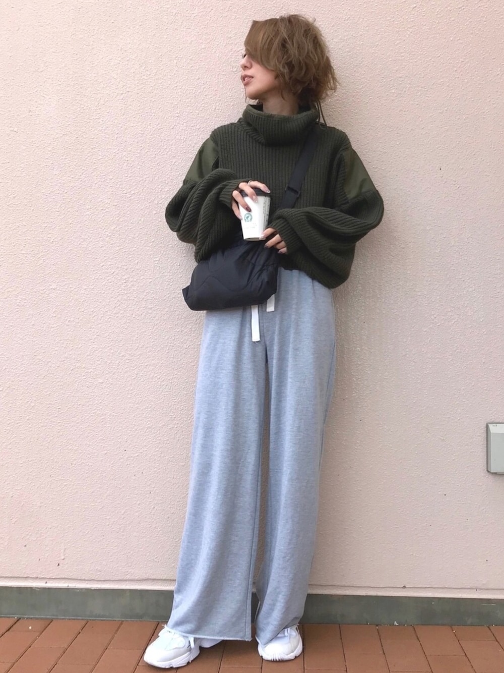 CLANEのコンバットニット風なミリタリーニット🧶 デザインがめちゃ可愛いし、ショート丈で合わせやすい❤️ todayfulのパンツも、綺麗なシルエットの楽ちんスウェットパンツでお気に入り💓 インスタ @kumika_iiio2