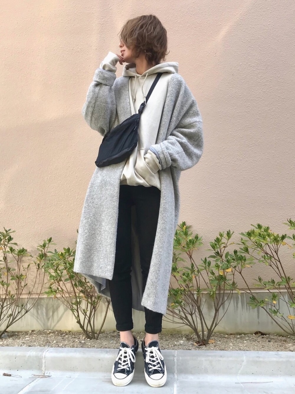 ノーカラーコートに、パーカー合わせ❤️ ライトグレーのコート、明るくて可愛い💕 トイプードルの様なモコモコの生地も可愛いです😍 インスタにショップのタグ付けしておきます😊✨ インスタ @kumika_iiio2