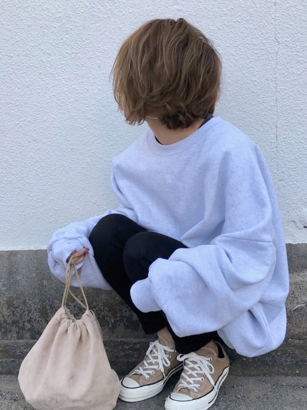 ゆったり可愛いスウェットの休日コーデ❤️ 小物はベージュ。 このスウェット、シルエットがめちゃくちゃ可愛い💕💕 インスタ @kumika_iiio2