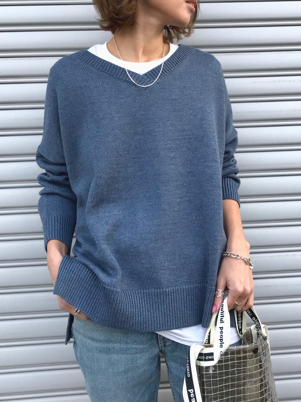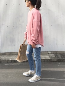 Kumika☆のニット/セーター「【洗濯機で洗える】Vネックドロップショルダーニットプルオーバー」を使ったコーディネート