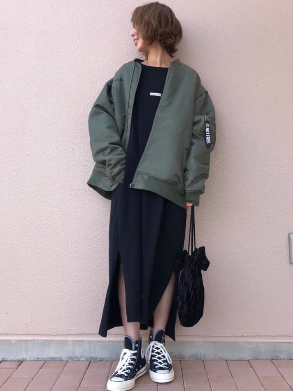 オールブラックにカーキのMA-1💕 ゆるっと❤️ インスタ @kumika_iiio2