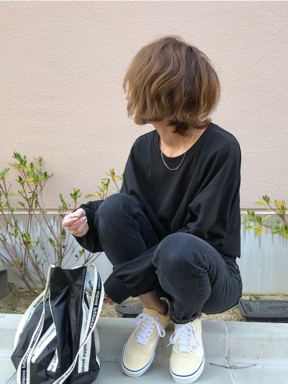 ブラックとパステル🍋 VANSのクリームイエローってカラーが、イエローにベージュ足したような絶妙カラーでめっちゃ可愛い😍💕 ブラック、ホワイト、ベージュに合わせたら、大人っぽくパステルを取り入れられそう🙆♀️✨ インスタ @kumika_iiio2