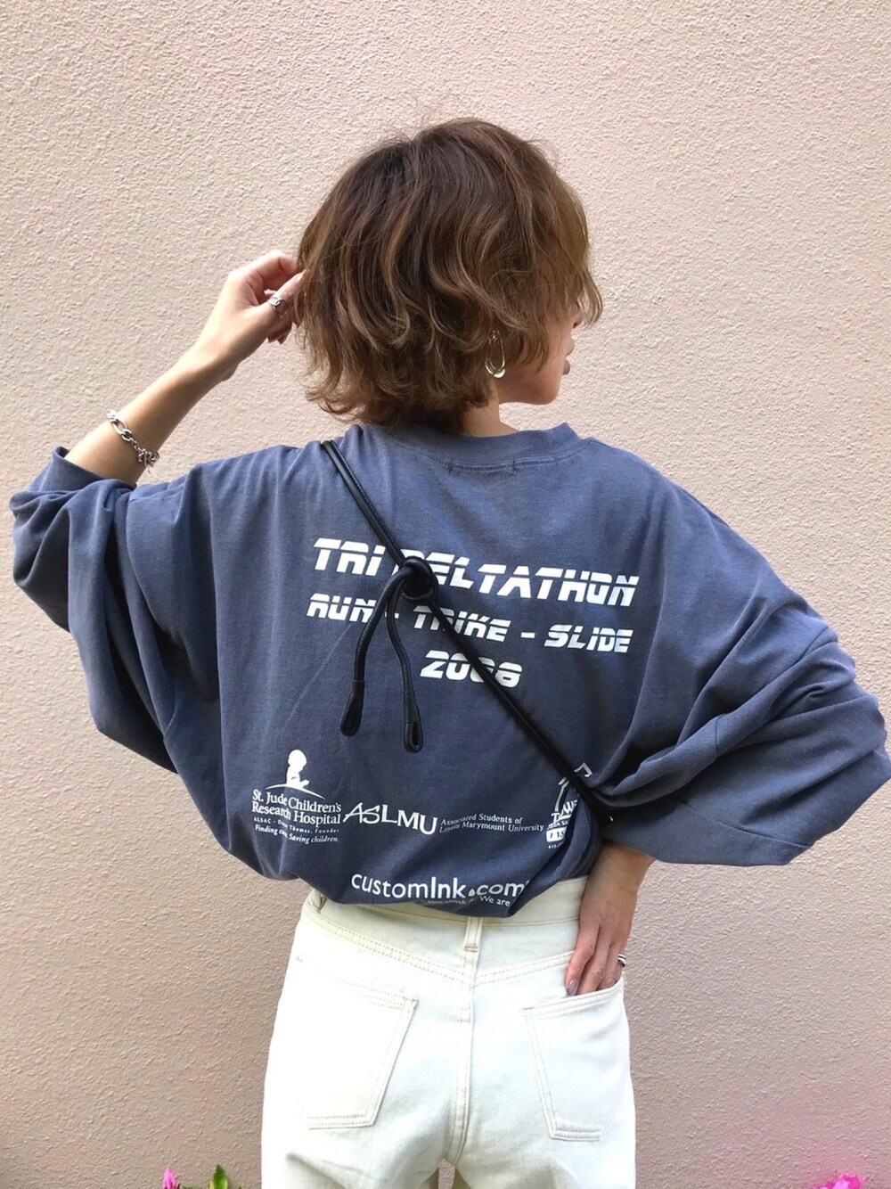 ホワイトデニムに、チャコールグレーのプリントロンt♡ この前着ていたホワイト×グリーンのロンtの色違いです😊 この形と背中の可愛いさに惹かれて2色目ゲット✨✨ このデニムもめっちゃ可愛くておすすめ💕 インスタに全身写真載せてます😊 インスタ @kumika_iiio2