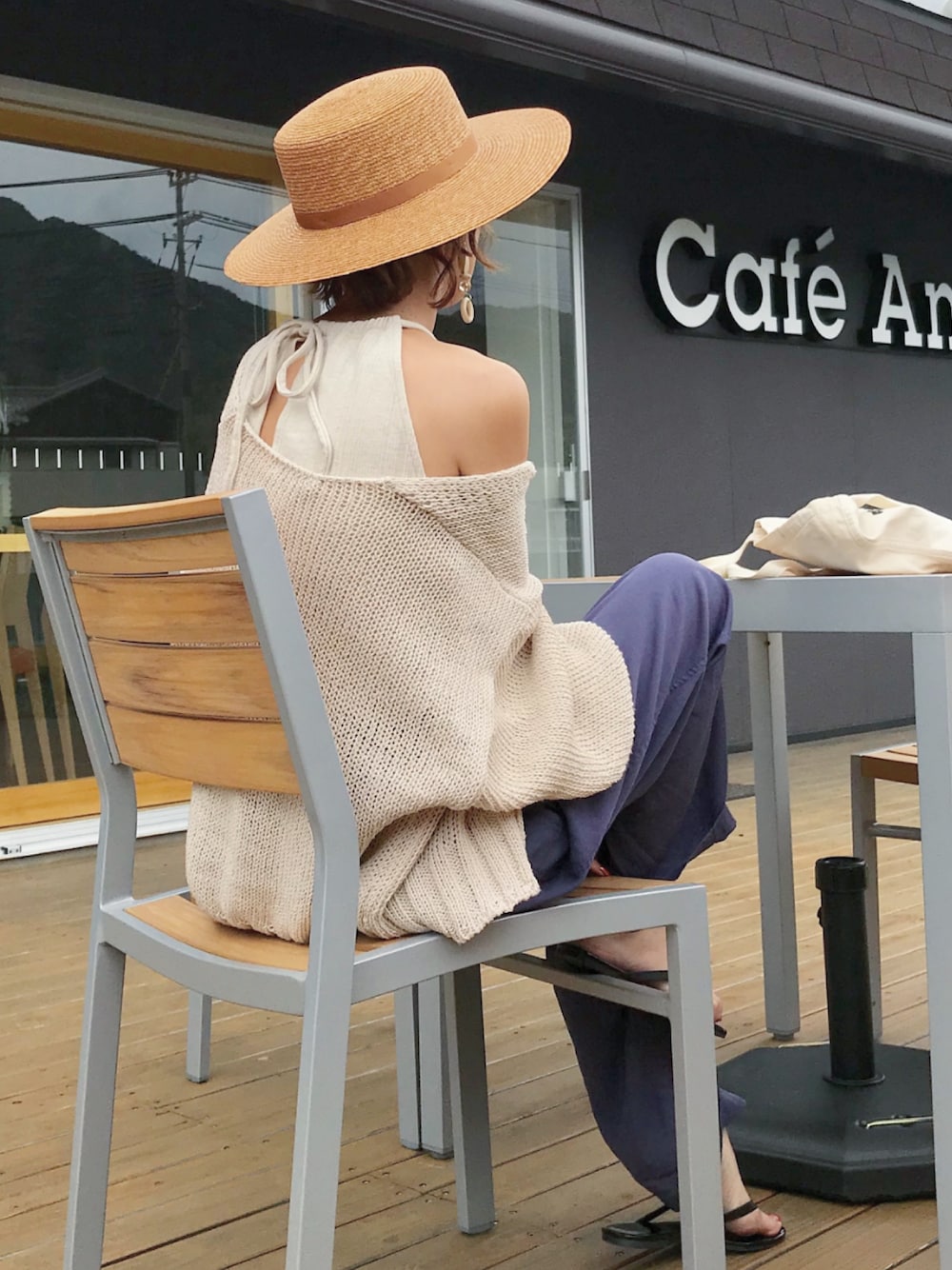 後ろのデザインが可愛いtopsに惹かれる❤️ ゆるーいコーデにカンカン帽って好き😊 インスタ @kumika_iiio2