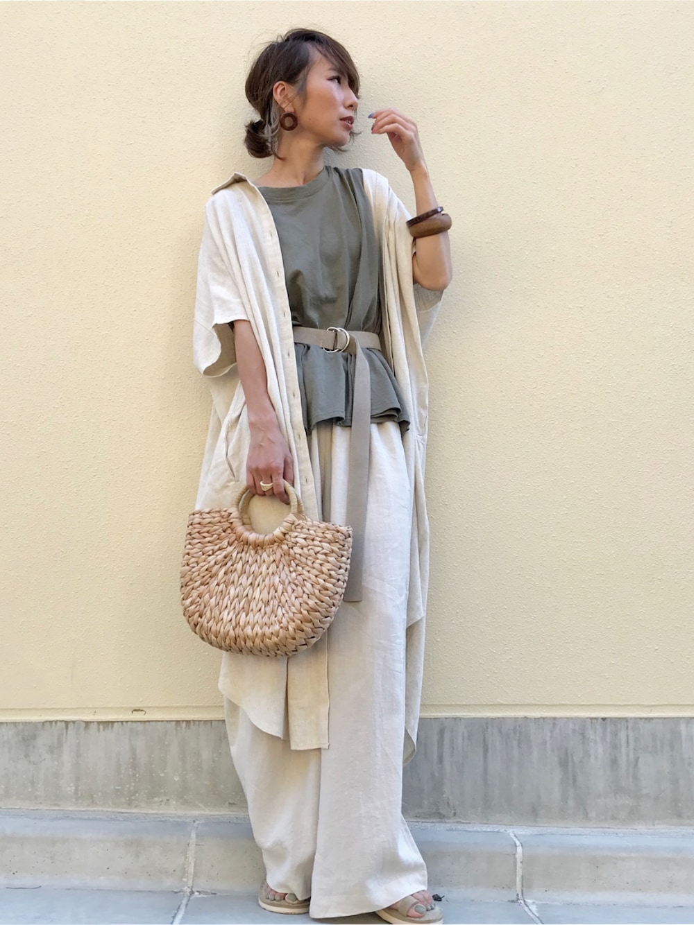 リネンワントーンに、差し色カーキ🌿 インスタ @kumika_iiio2