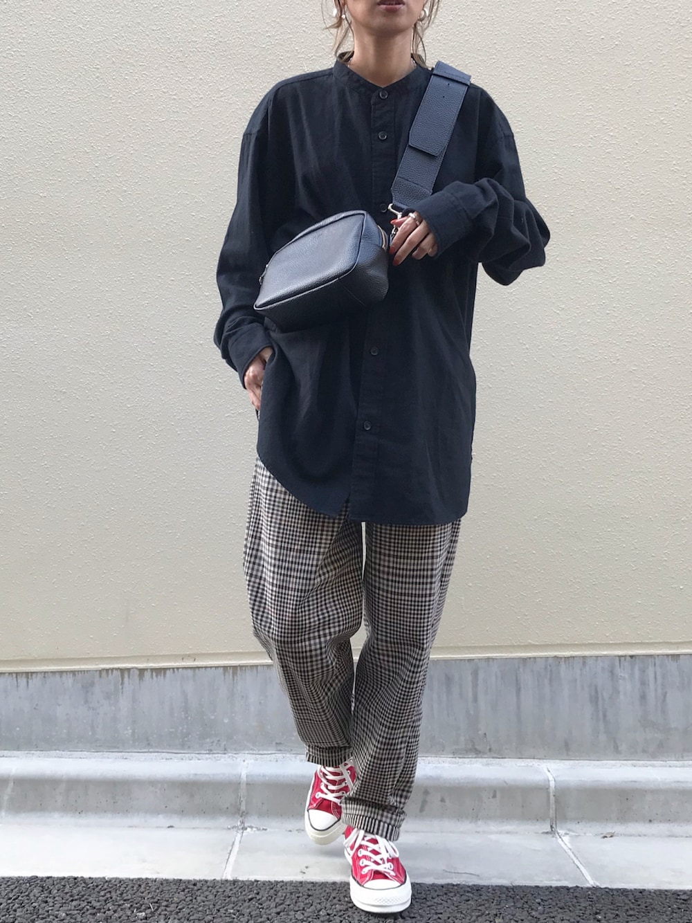 メンズライクなチェック💓 差し色は赤👟❤️ インスタ @kumika_iiio2