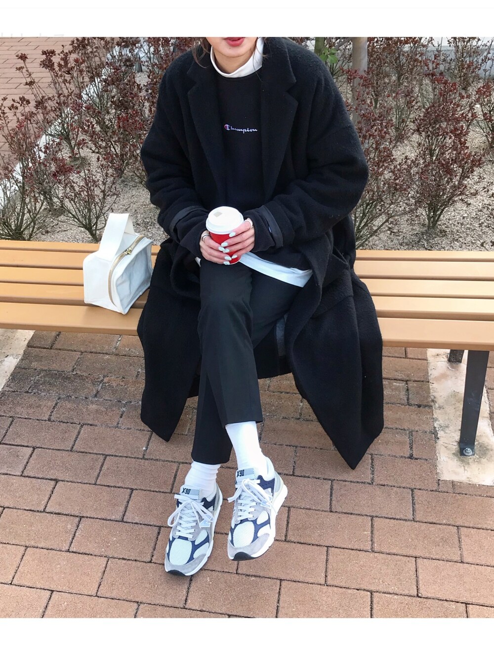 めちゃくちゃ寒かった日のブラックコーデ 久しぶりに履いたニューバランス ♡ インスタ @kumika_iiio2