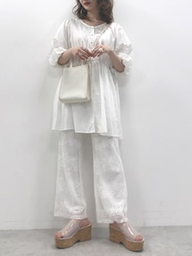 Kumika☆のシャツ/ブラウス「via j(ヴィアジェイ) シアーバンドカラーシャツ」を使ったコーディネート