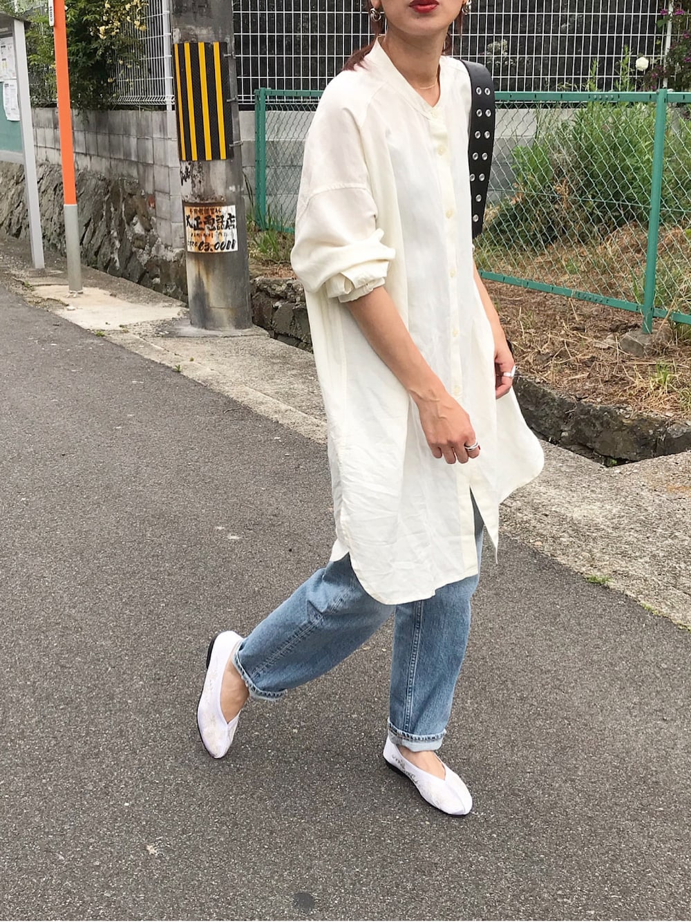 バンドカラーチュニックに、薄色デニム、チャイナシューズ🌸 インスタ @kumika_iiio2